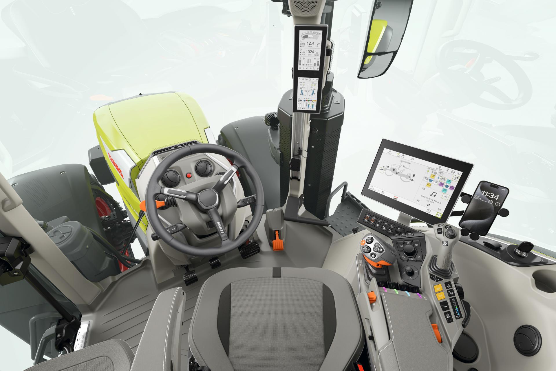 Ciągnik otrzymał również nowy zintegrowany terminal sterujący CEBIS connect. Informacje są wyświetlane na 12-calowym ekranie głównym, który jest zintegrowany z podłokietnikiem. Istnieje także możliwość ich prezentacji na dodatkowym 12-calowym terminalu dotykowym. Wszystkie funkcje można ustawiać i konfigurować na obu terminalach. Menu można dowolnie przełączać między obydwoma terminalami – w zależności od tego, co jest optymalne dla danego zastosowania. Dzięki temu system nawigacji GPS PILOT może być teraz wyświetlany zarówno na głównym ekranie CEBIS connect w podłokietniku, jak i na dodatkowym 12-calowym terminalu.