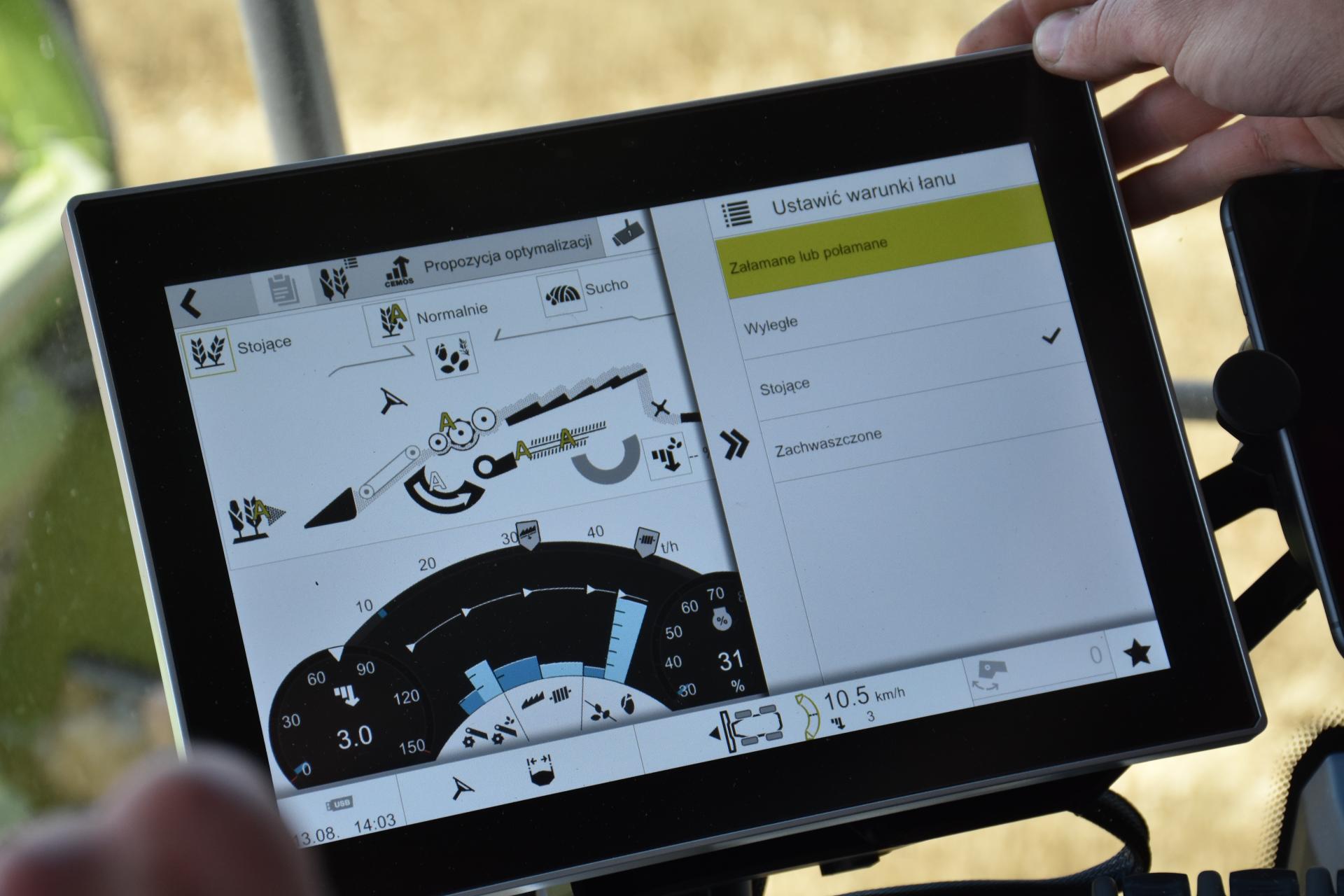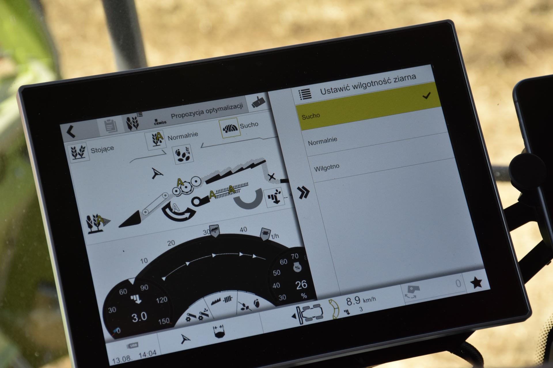 – CEMOS wyciąga wnioski i uczy się dzięki informacjom, które rejestrowane są przez czujniki. Znajdują się między innymi na sitach, wytrząsaczach, w strefie, w której dokonywana jest ocena jakości ziarna pod względem uszkodzeń, zawartości zanieczyszczeń, ilości powrotów materiału do ponownego młócenia oraz zawartości ziarna w strefie powrotów. Operator może podczas pracy korzystając z rozwiązania CEMOS Dialog wymieniać informacje z systemem, który reguluje ustawieniami kombajnu. Jeśli w jego odczuciu jakieś parametry nie są poprawne lub właściwe można przez okno dialogowe zgłosić to. Na tej podstawie CEMOS dokonuje weryfikacji i przy okazji uczy się – informuje Mateusz Nowak z Claas Polska.