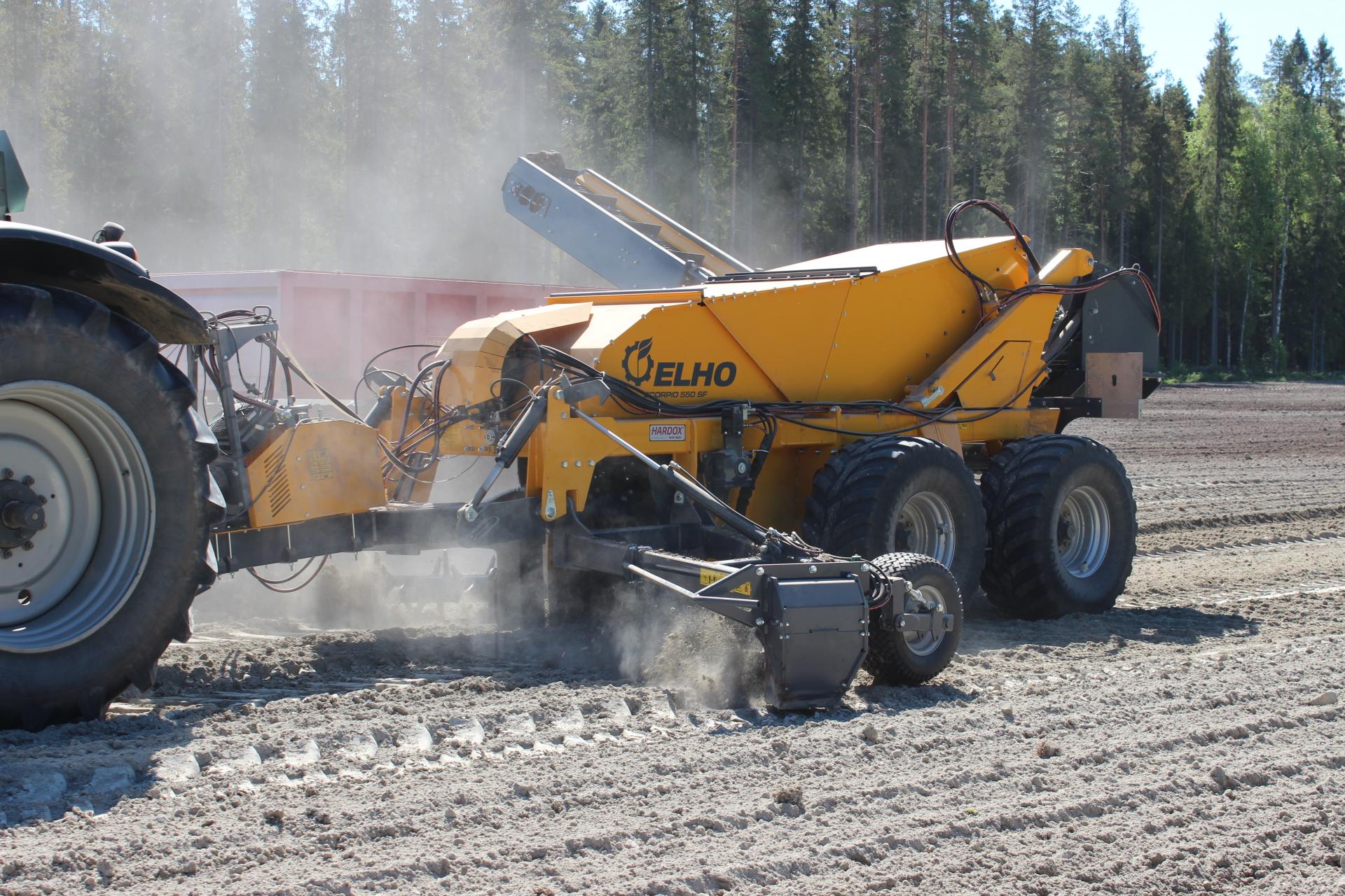 Scorpio 550 SF wyposażony jest w rotor o średnicy 1,8 m – największy w swojej klasie. W połączeniu z dużą prędkością obrotową (80 obr./min) i wałami nagarniającymi (125 obr./min), maszyna zbiera nawet najtrudniejsze kamienie z głębokości do 7 cm.