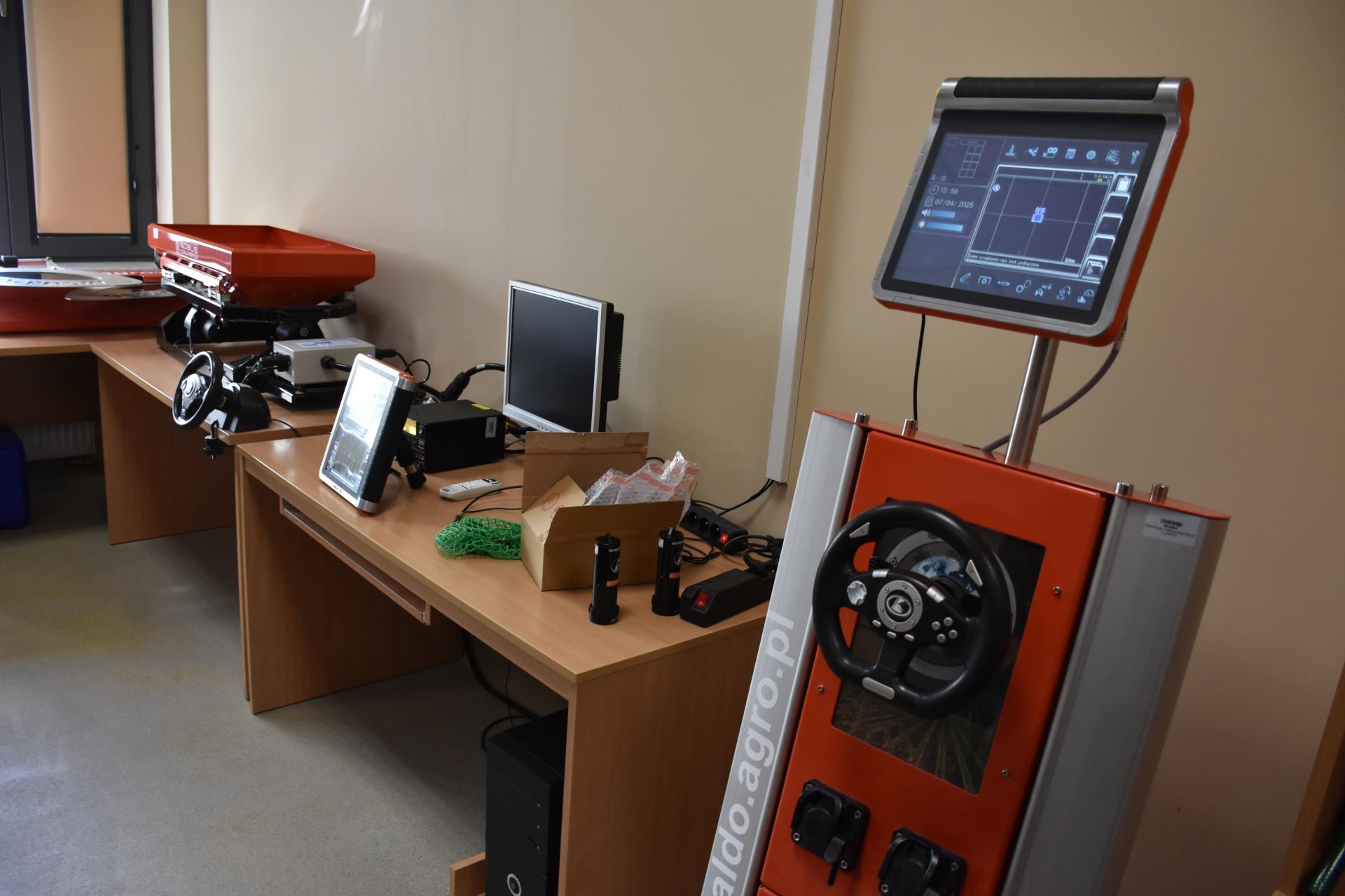 System TL GEOSPREAD z terminalem i oprzyrządowaniem pozwalającym na symulatorze wirtualnie prowadzić szkolenia z zakresu pracy rozsiewacza z systemem wagowym marki Kubota, redlica siewna TurboDisc od firmy Horsch, rozwiązania rolnictwa precyzyjnego marki Vantage, nowy rozsiewacz wyprodukowany przez Kverneland oraz ciągnik Farmtrac to tylko niektóre z maszyn, jakie znajdują się w Katedrze Pojazdów i Maszyn w ramach Pracowni rolnictwa precyzyjnego i agrotroniki.