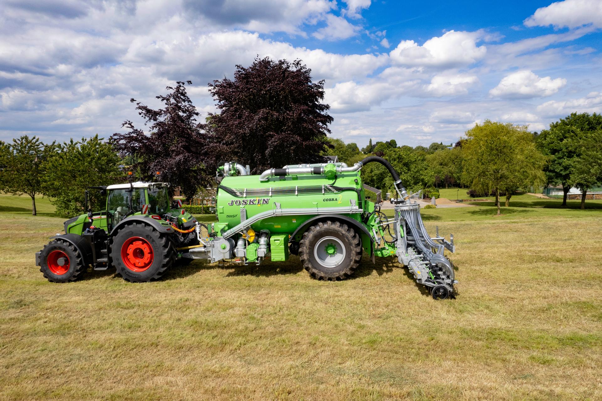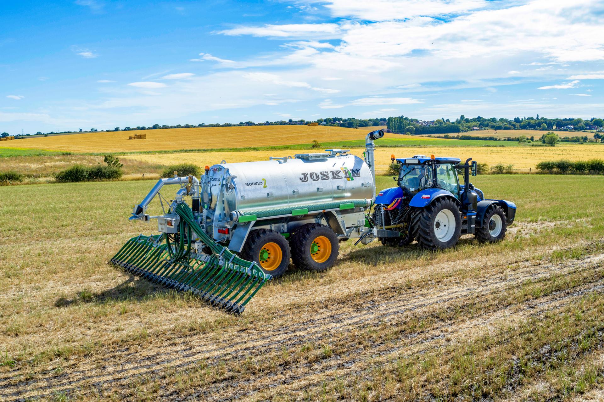 JOSKIN zapewnia, że jego rampy rozlewające umożliwiają szybkie i równomierne rozprowadzanie gnojowicy na dużych szerokościach. Rampy te umieszczają gnojowicę na powierzchni, jak najbliżej roślinności, jednocześnie ograniczając jej kontakt z powietrzem, zmniejszając straty amoniaku w wyniku ulatniania się i poprawiają wydajność azotu. Węże rozmieszczone w regularnych odstępach (25–30 cm), zasilane przez jeden lub kilka rozdzielaczy, gwarantują jednocześnie równomierne rozprowadzanie gnojowicy, nawet w wietrznych warunkach.