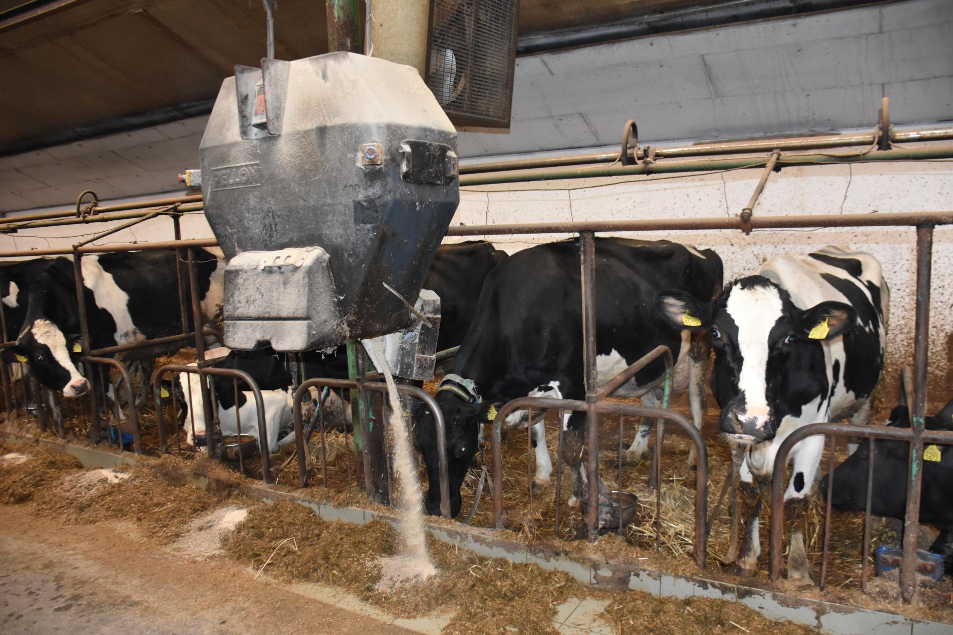 W skład dawki TMR dla krów dojnych wchodzą takie pasze jak: kiszonka z kukurydzy, sianokiszonka, młóto browarniane, wysłodki buraczane, CCM, melasa, śruta zbożowa, poekstrakcyjne śruty sojowa i rzepakowa, dodatek mineralno-witaminowy oraz kreda pastewna. Jest to dawka wyliczona na dzienną produkcję 32 litrów mleka.