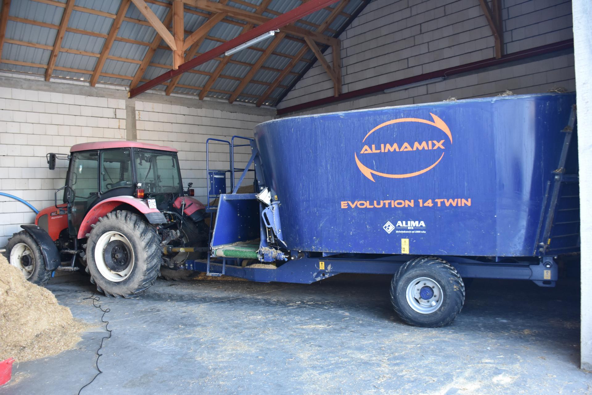 Teraz dawka TMR powstaje w dwuślimakowym pionowym wozie paszowym Alimamix Evolution o pojemności 14 m3 od polskiego producenta A-Lima-Bis ze Środy Wielkopolskiej, który hodowcy zakupili całkiem niedawno. Była to okazja, bo w poprzednim gospodarstwie paszowóz przepracował zaledwie 3 miesiące, a więc jest jak nowy.