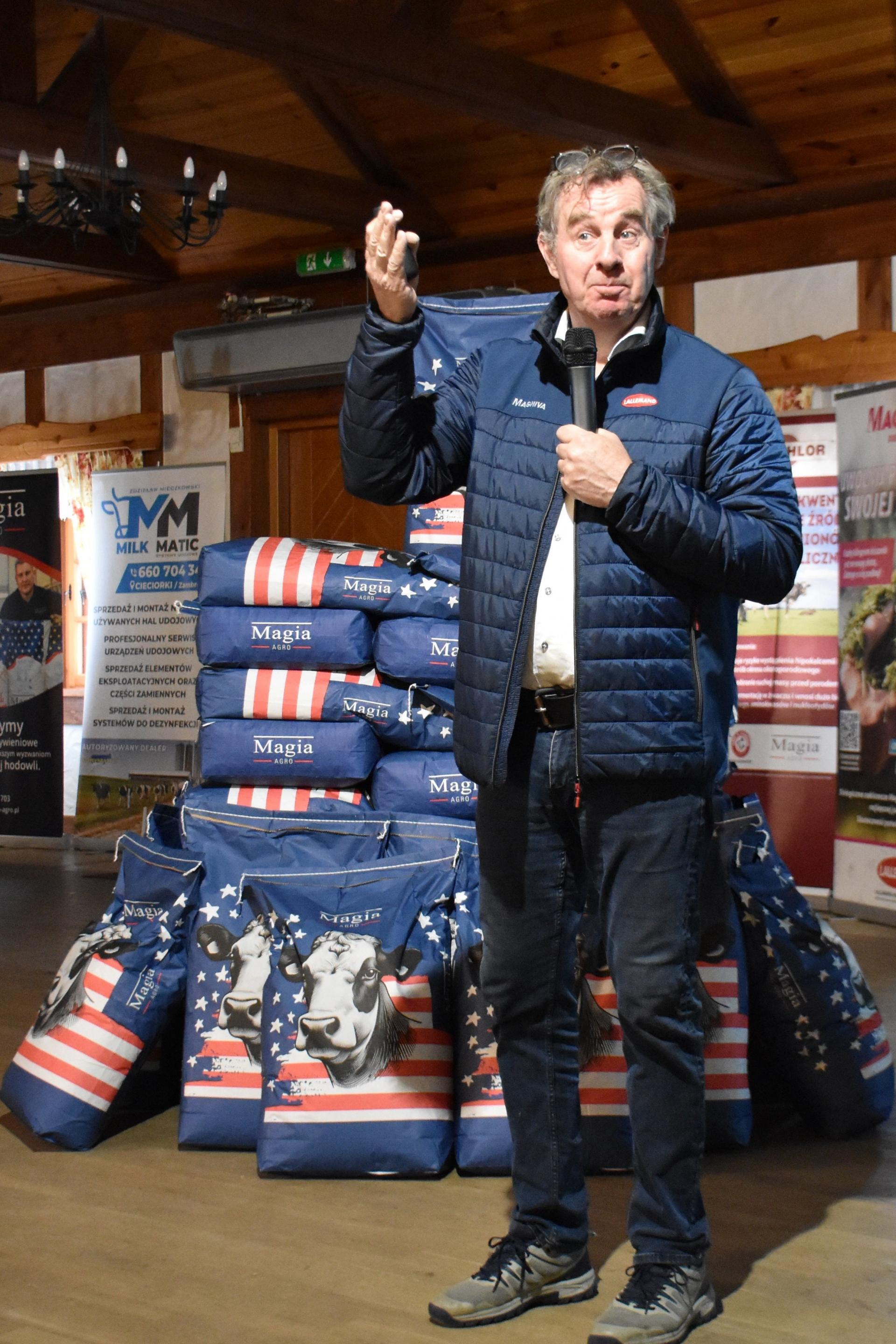 – Aby to ocenić wystarczy, że popatrzymy na krowę i ocenimy czy żwacz jest pełny czy pusty. Jeśli widoczny jest trójkąt za żebrami po lewej stronie krowy tzw. dół głodowy, to znaczy, że żwacz nie jest dostatecznie wypełniony i ta krowa jest zagrożona zarówno pod względem produkcyjnym, jak i zdrowotnym. Żwacz ma 200 litrów pojemności. Żwacz i czepiec wypełniają lewą część brzucha. Jeżeli żwacz nie działa tak jak trzeba, to cała krowa nie funkcjonuje dobrze. Nie żywimy tak naprawdę krowy tylko mikroorganizmy bytujące w żwaczu. W jednej łyżeczce płynu żwaczowego znajduje się 7–8 mld mikroorganizmów, czyli tyle ile ludzi jest na świecie – stwierdził mówca.
