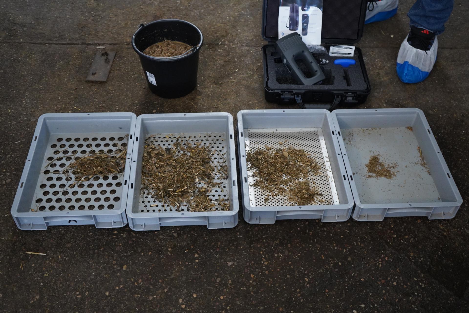– Pamiętajmy, że kluczowym elementem tak przygotowywanej dawki jest właściwa sucha masa TMR-u, która powinna wynosić 34–38%. Gdy TMR jest za suchy (powyżej 40% s.m.) krowy łatwo go sortują i rośnie ryzyko kwasic. Gdy jest za mokry (poniżej 30–33%) krowy niechętnie go pobierają, a ponadto w okresie letnim łatwo się zagrzewa – wyjaśniał Michał Grygiel, który przekazał też hodowcom, jak w prosty i szybki sposób można sprawdzić wilgotność TMR-u za pomocą tzw. testu dłoni. Otóż, TMR jest prawidłowy, jeżeli da się z niego uformować kulkę, która po otwarciu dłoni powoli się rozsypuje. Gdy kulki nie da się uformować, a TMR od razu się rozsypuje to znak, że jest za suchy. Mieszanina jest z kolei za mokra, gdy kulka się nie rozpada, a na dłoni pozostaje wyraźna wilgoć.