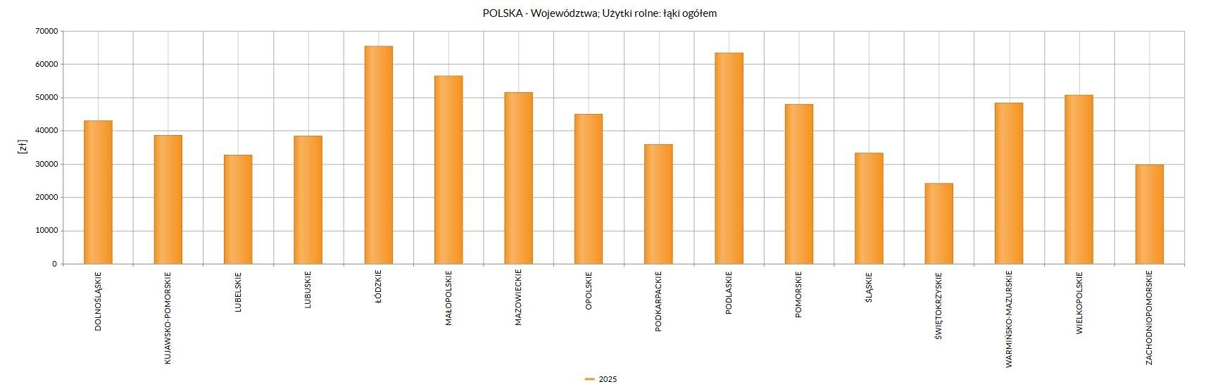 Oznacza to, że różnica między najdroższym a najtańszym regionem wynosi aż 41 362 zł na hektar, co pokazuje ogromne zróżnicowanie rynku łąk w Polsce.