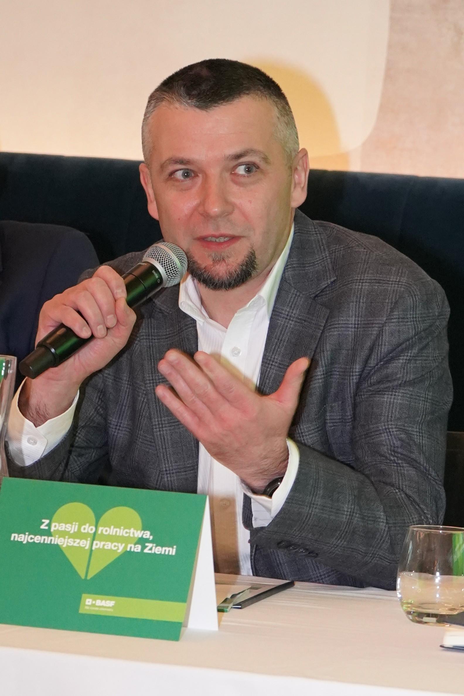 Spotkanie moderowane przez Annę Zalewską, advocacy manager z BASF Polska, rozpoczął Andrej Sarnatsky – country manager Agricultural Solutions BASF Polska, opowiadając o wyzwaniach, z jakimi mamy do czynienia aktualnie w rolnictwie, jak zmiany klimatu, ekstremalne warunki pogodowe, presja regulacyjna ograniczająca możliwości zwalczania patogenów, potrzeba wdrażania zrównoważonych i regeneratywnych praktyk rolniczych, niedobór siły roboczej, starzenie się społeczeństwa oraz konieczność zapewnienia żywności i surowców dla rosnącej populacji, a wreszcie rosnący popyt na biopaliwa i biosurowce ze względu na regulacje i zobowiązania w zakresie zrównoważonego rozwoju.
