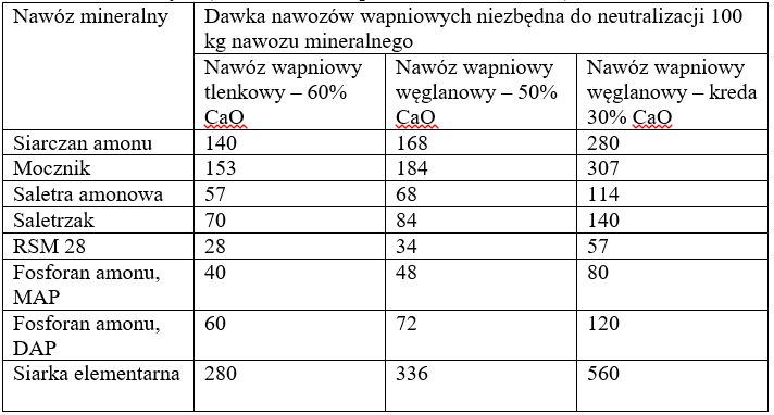 - zakwaszającego wpływu na glebę fizjologicznie kwaśnych nawozów.