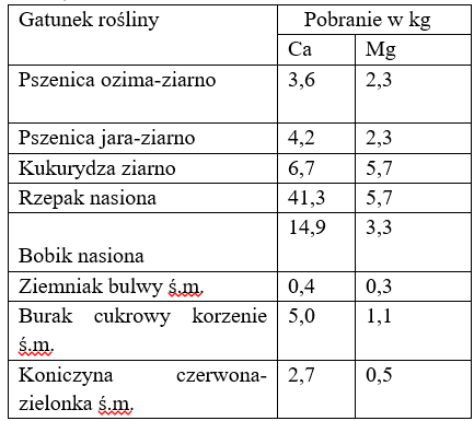 - pobrania przez rośliny wapnia i magnezu wynoszonego z plonem,