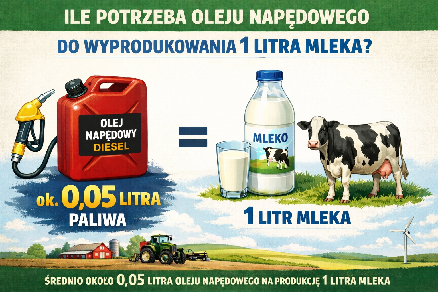 Odpowiedź na pytanie, ile litrów ropy jest w litrze mleka można ująć w prostym, obrazowym przeliczeniu, które dobrze pokazuje skalę zależności mleczarstwa od energii. Przy cenie ropy na poziomie od 80 do 100 dolarów za baryłkę, czyli około 0,50–0,65 dolara za litr surowca, oraz przy założeniu, że wyprodukowanie jednego litra mleka wymaga energii odpowiadającej zużyciu 0,05–0,1 litra paliwa, otrzymujemy ciekawy punkt odniesienia. Oznacza to, że sama energia zawarta w paliwie wykorzystanym w produkcji odpowiada obecnie wartości około 0,5–1 litra mleka. Innymi słowy, jedna baryłka ropy zawierająca około 159 litrów napędza produkcję od kilkuset do nawet tysiąca litrów mleka, w zależności od intensywności produkcji, poziomu mechanizacji i udziału pasz zewnętrznych. To uproszczone porównanie dobrze pokazuje, że choć mleko powstaje w oborze, to znaczna część realnych kosztów produkcji zaczyna się znacznie wcześniej, m.in. na globalnym rynku energii.
