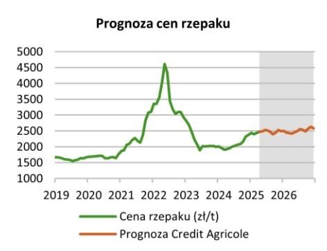 - na koniec 2025 roku cena rzepaku osiągnie około 2500 zł za tonę,