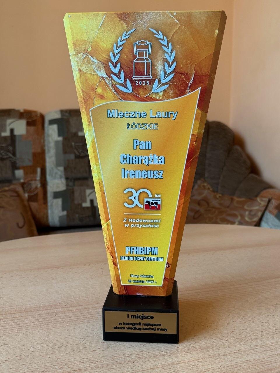 Potwierdzeniem tych słów są stale rosnące wyniki produkcyjne stada, w którym Anna i Ireneusz Charążkowie – mocno wspierani przez córkę Karolinę i zięcia Daniela Kowalskich – utrzymują 170 sztuk bydła, w tym 90 krów o średniej wydajności za ubiegły rok wynoszącej 11,5 tysiąca kg mleka. Poziom ten pozwala na sprzedaż do Reny Picot – ILAS Polonia S.A. w Ciechanowie około 90 tys. litrów mleka miesięcznie. I co ważne, za ilością idzie również jakość białego surowca, co potwierdza chociażby zdobycie w tym roku pierwszego miejsca w województwie łódzkim i uzyskanie statuetki Złotego Laura za suchą masę w mleku.