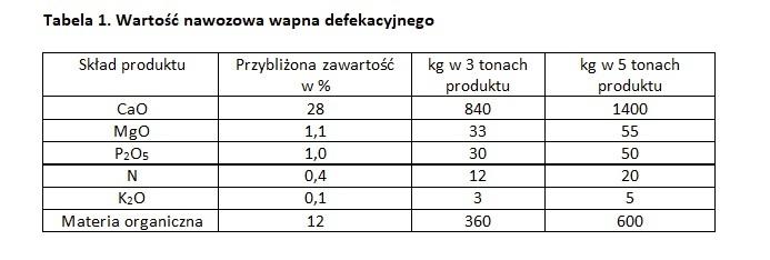 Wapno defekacyjne może być stosowane w uprawie roślin jarych również w okresie wiosennym. Podanie dawki 3 ton wapna defekacyjnego na hektar, wprowadza do gleby: