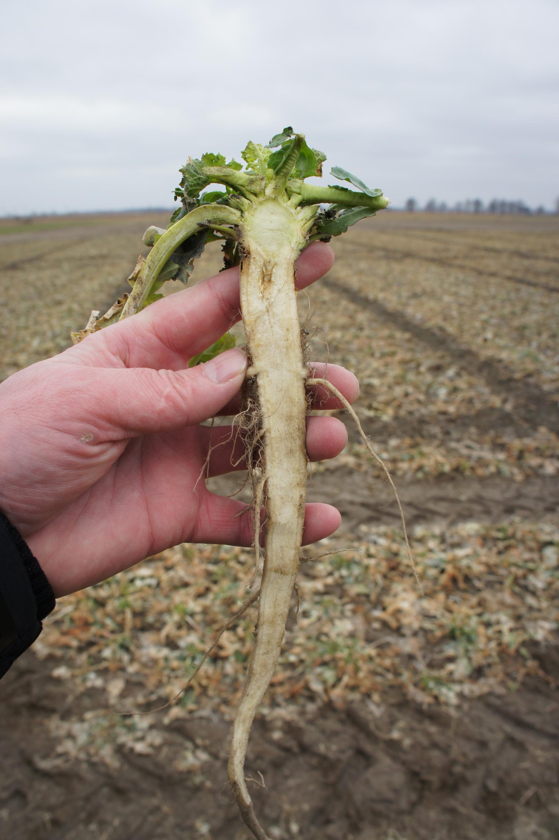 Jeżeli w czasie wykonania testu gleba jest zamarznięta, należy wykuć monolit ze zmarzniętą bryłą gleby tak, aby roślina miała co najmniej 7 cm górnego odcinka korzenia palowego i nieuszkodzony pąk wierzchołkowy.