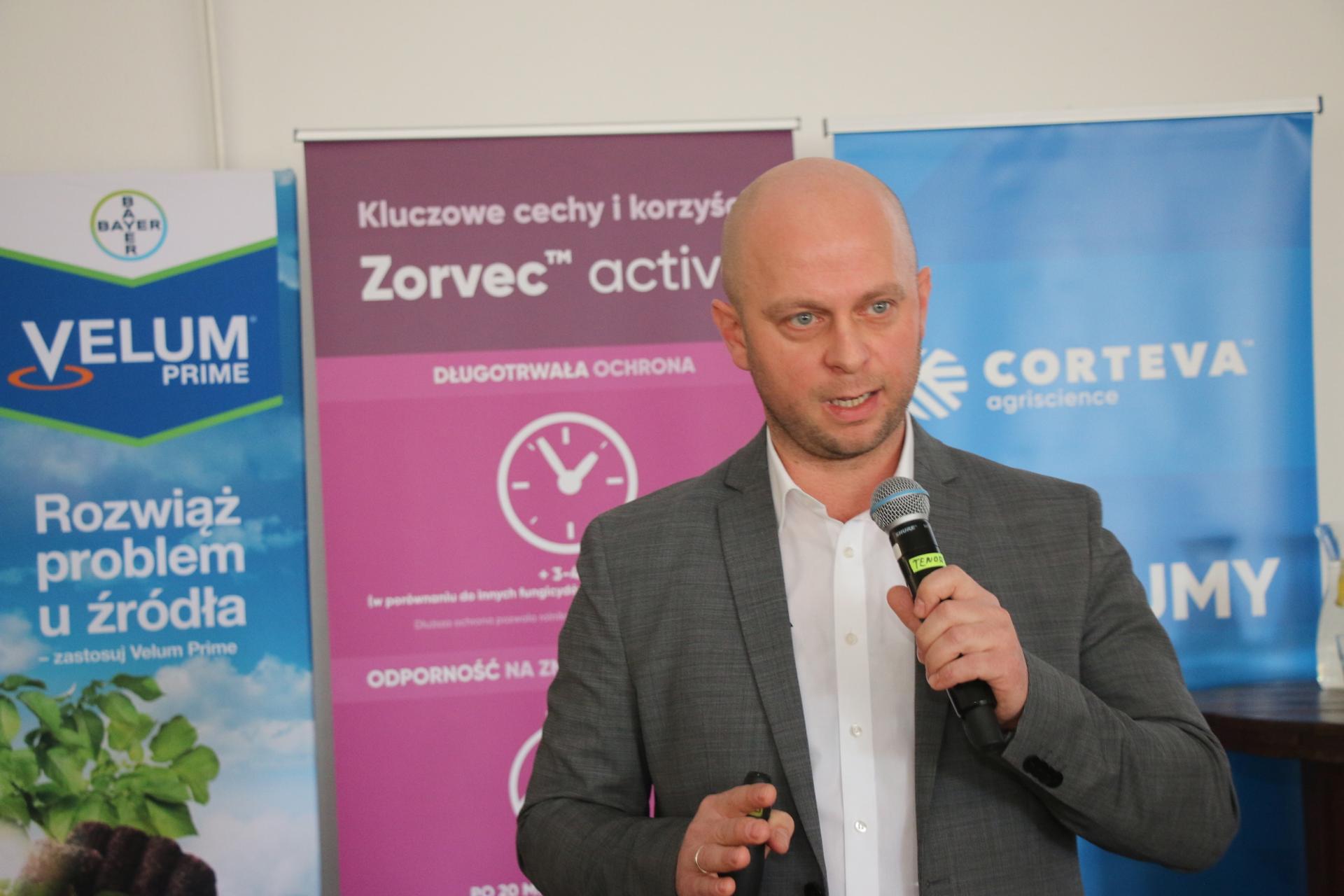 Temat odporności patogenów poruszył także Marcin Kraśner z firmy Corteva. Fungicydy według niego powinny być stosowane nie tylko zapobiegawczo, ale także koniecznie trzeba zmieniać używane substancje czynne. Wspomniał także o problemie stonki ziemniaczanej.