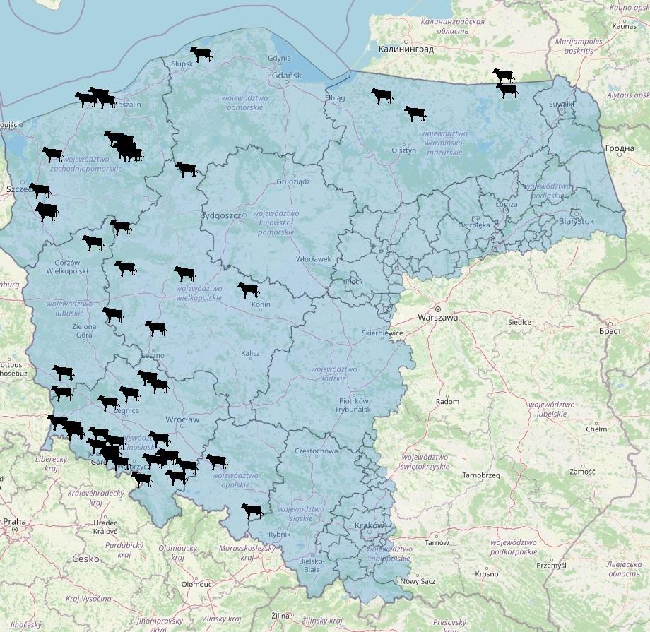 Tylko 9 grudnia potwierdzono 8 nowych ognisk choroby. Dotyczą one głównie bydła, ale także owiec. Najwięcej przypadków odnotowano w województwie dolnośląskim oraz warmińsko-mazurskim.