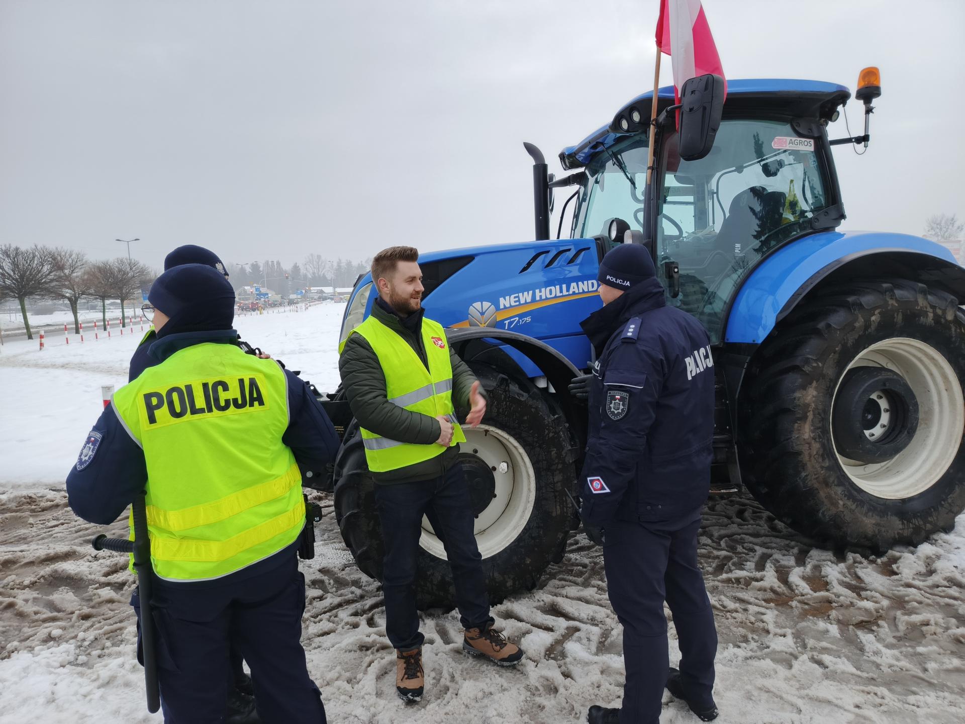 Ostatecznie po przybyciu na miejsce dodatkowych radiowozów ciągniki ruszyły w kolumnie do Parzniewa.