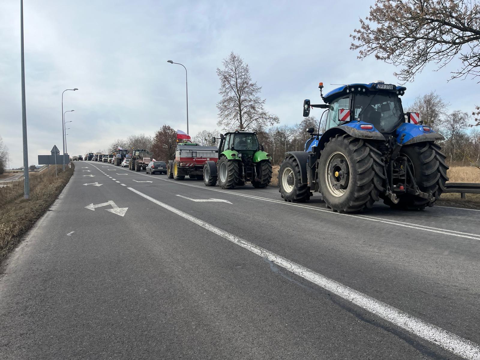 Na miejscu protestu jest obecnych 80 rolników, 25 ciągników i 15 samochodów.