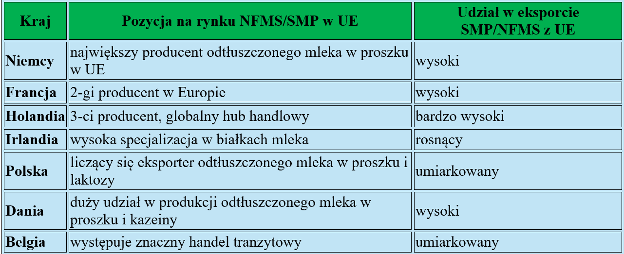 - zmapowanie światowego rynku produktów o wysokiej zawartości białek mleka (NFMS),