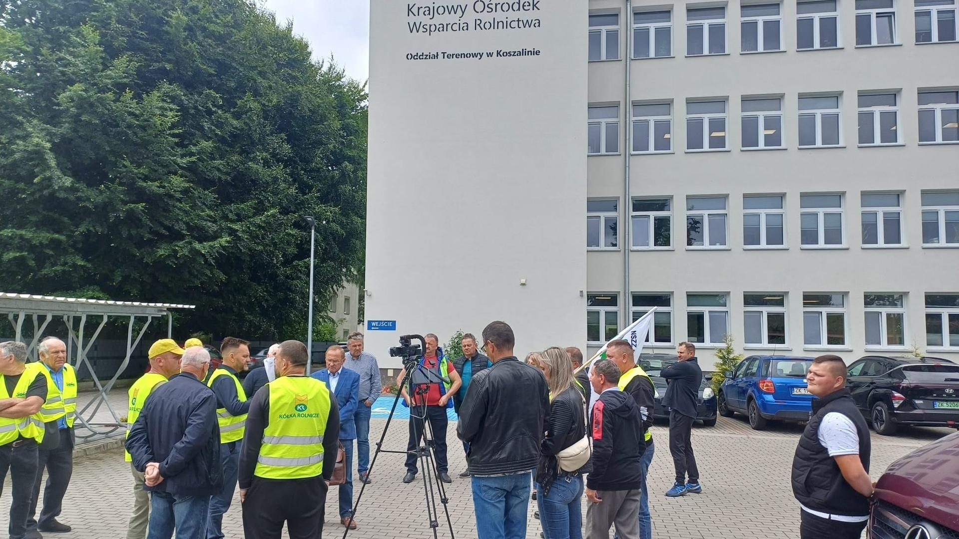 Dziś, 27 czerwca, o godzinie 12:00 w KOWR Koszalin miał odbyć się przetarg na dzierżawę Ośrodka Produkcji Rolniczej Giżyno o powierzchni 620 ha. Od rana pod siedzibą Ośrodka gromadzili rolnicy. Wśród nich byli przedstawiciele Oddolnego Ogólnopolskiego Protestu Rolników, działacze NSZZ Solidarność Rolników Indywidualnych, Kółek Rolniczych, rolnicy z regionu oraz poseł Czesław Hoc, który przybył z interwencją poselską. Wszyscy apelowali o wstrzymanie przetargu, który ich zdaniem faworyzował duże podmioty i wykluczał lokalnych rolników indywidualnych.