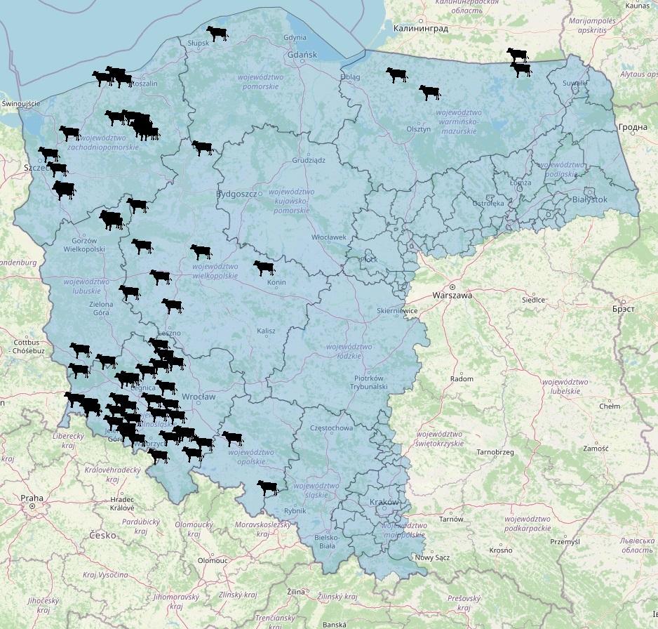 Największe ogniska odnotowano m.in. w Snowidowie (Wielkopolska), gdzie wirus wykryto w stadzie liczącym 203 sztuki bydła, a także w Gościmiu i Pławinie w Lubuskiem, gdzie choroba dotknęła ponad 230 sztuk bydła łącznie. W Szczecinie zakażenia potwierdzono również u kóz – obok 62 sztuk bydła, w jednym gospodarstwie było ognisko wśród 80 kóz.