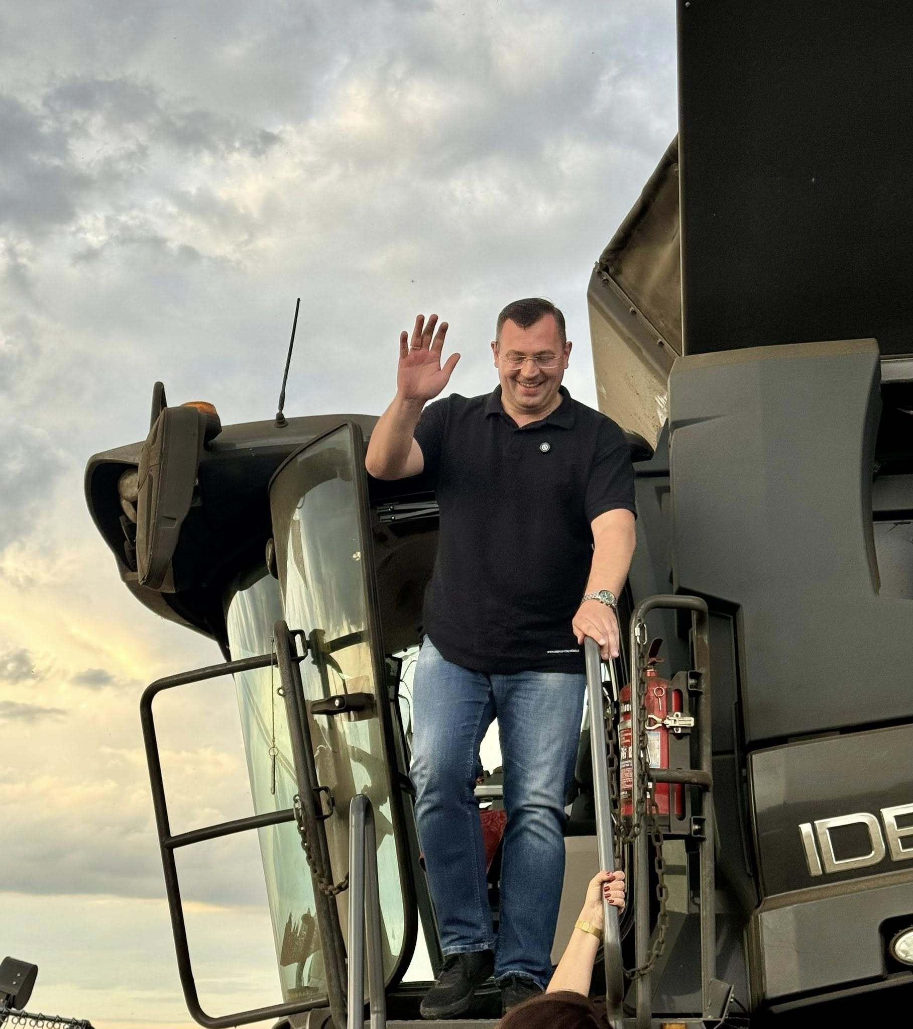 – Razem z Panem Hubertem Ojdaną rozmawialiśmy wprost z kabiny kombajnu – bo na polu czas to pieniądz, a rozmowy najlepiej się kleją, gdy w tle pracuje silnik i słychać szum ciętych łanów – napisał w mediach społecznościowych Stefan Krajewski.