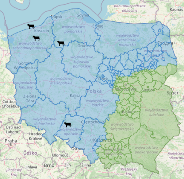 Gospodarstwo, w którym wykryto wirusa, należy do dużych. Stado liczy 1049 sztuk bydła. Dodatni wynik badania PCR potwierdzono u dwóch zwierząt. Podobnie jak w poprzednich ogniskach z 2026 roku, także w tym przypadku potwierdzono serotyp 3 wirusa choroby niebieskiego języka (BTV-3). To wariant, który łatwo się rozprzestrzenia, ale u bydła zwykle przebiega łagodnie lub bezobjawowo.