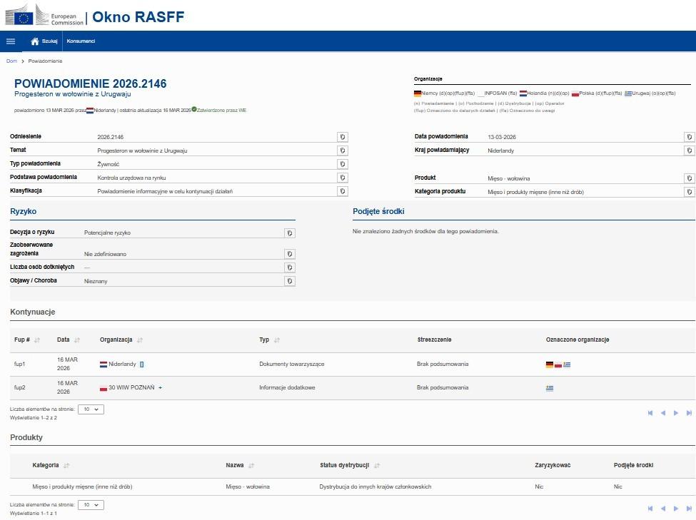 Komunikaty zamieszczone w systemie RASFF są dość ogólnikowe. Wiadomo, że pierwsze ostrzeżenie pojawiło się w ubiegły piątek i dotyczyło partii wołowiny przeznaczonej na rynek Polski oraz Niemiec. Z dostępnych danych wynika, że mięso pochodziło z Urugwaju i Argentyny i zostało sprowadzone przez Holandię, a badania wykazały obecność pozostałości progesteronu. Komisja Europejska nie sprecyzowała jednak, jak duże było przekroczenie dopuszczalnych norm.