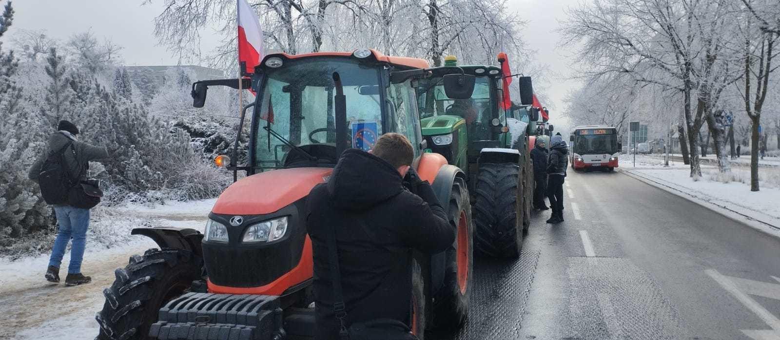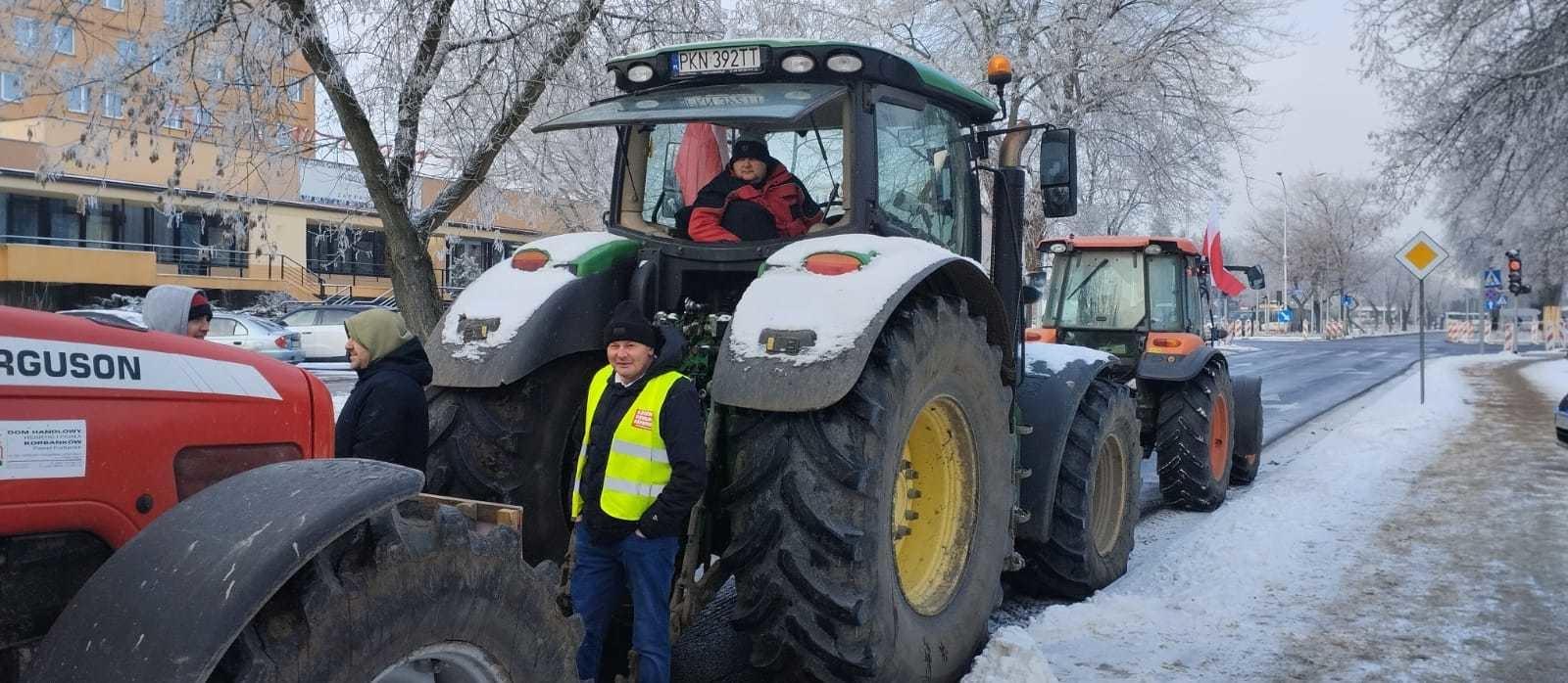 Protest w Koninie: rolnicy wyjechali ciągnikami na ulice miasta