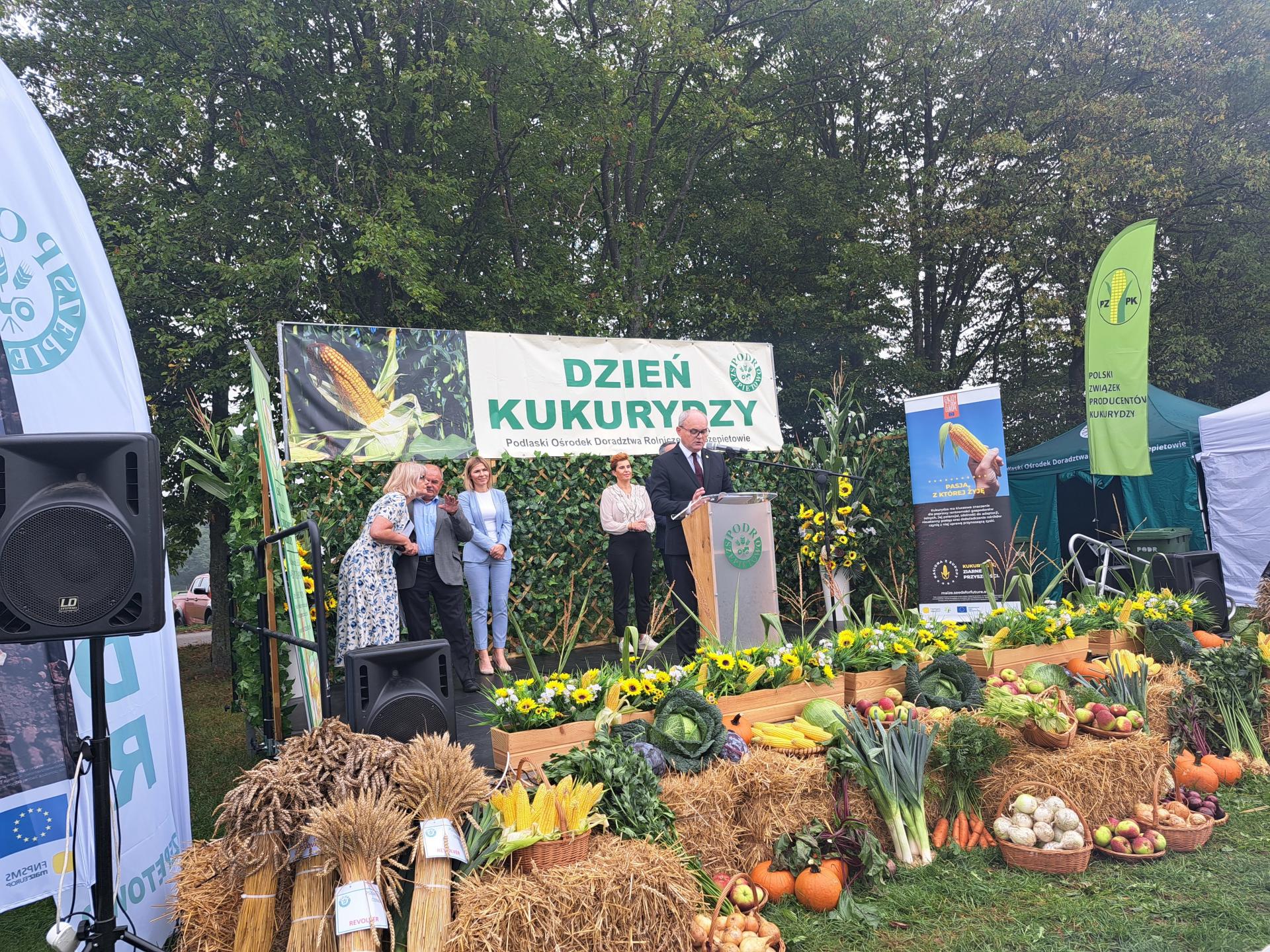 - Dzisiejszy dzień to połączenie doświadczenia rolników z wiedzą naukowców i doradców. Na polach doświadczalnych naszego ośrodka prezentujemy aż 139 odmian kukurydzy, a swoją wiedzą i praktyką podzielą się specjaliści z Polskiego Związku Producentów Kukurydzy, eksperci z 25 firm hodowlano-nasiennych oraz doradcy naszego ośrodka. Kukurydza odgrywa szczególną rolę w podlaskim rolnictwie, które opiera się w dużej mierze na produkcji mleka. Jako jedna z podstawowych roślin paszowych w żywieniu krów mlecznych wpływa nie tylko na wydajność stad, ale i na jakość końcowego produktu jakim jest mleko. Dlatego właśnie dobór odpowiedniej odmiany, właściwa technologia uprawy i efektywny zbiór mają ogromne znaczenie dla całego regionu - mówił podczas otwarcia Tadeusz Kruszewski, Dyrektor PODR w Szepietowie. Na Podlaskim Dniu Kukurydzy można było zwykle spotkać obecnego ministra rolnictwa Stefana Krajewskiego, gdyż to jego rodzinne okolice. Tym razem minister wybrał się na Dożynki Jasnogórskie, jednak przekazał gościom list.