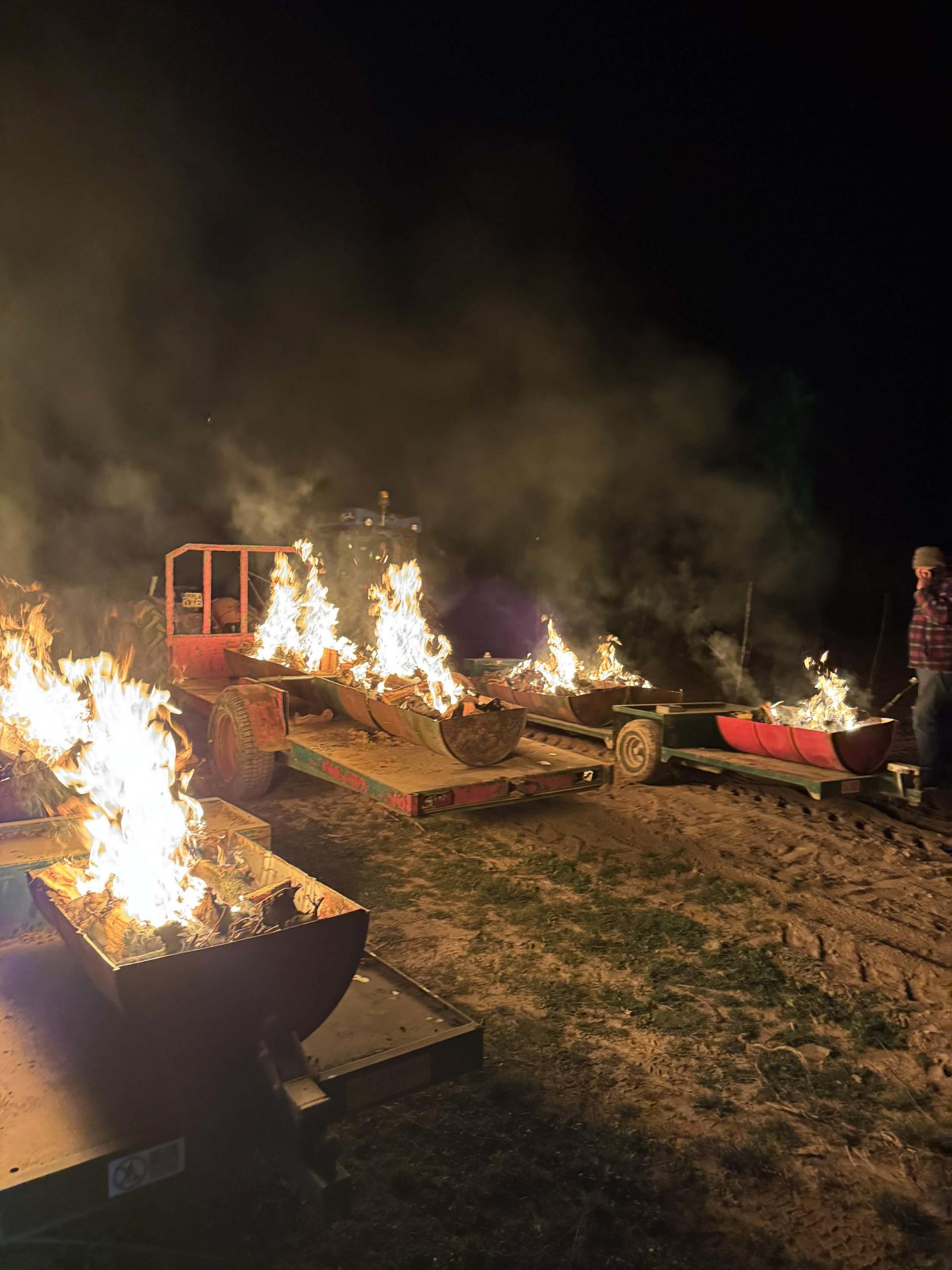 Ochrona czereśni w sadzie Łukasza Cielmy, autora kanału na YouTube „Cielmus Lubelski Sadownik”, zaczęła się 21 kwietnia około godziny 23.00. Wspólnie z tatą i synem jeździli trzema ciągnikami, ciągnąc za sobą wózki. Na nich ustawili pocięte beczki, w których palili drewnem. Pracowali praktycznie do 6.00 rano.