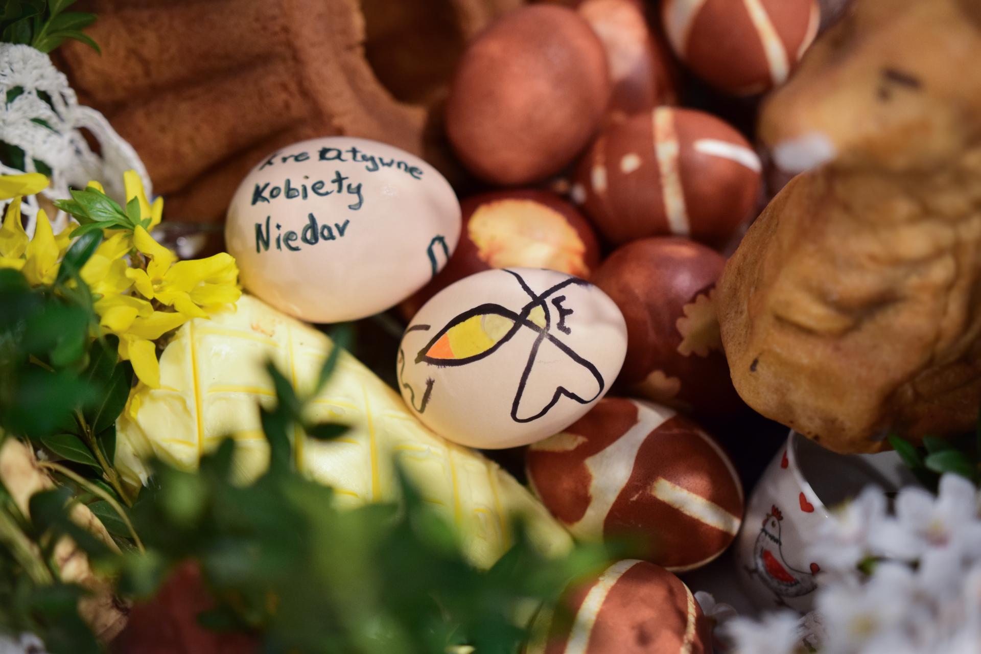 – Na naszym wielkanocnym stole musi być fitek, czyli żurek na serwatce. Robimy wywar z warzywami na wędzonce, potem dolewamy serwatkę. Doprawiamy zakiszonym żurem domowym. W tym roku była do tego biała kiełbasa robiona przez naszego kolegę. Do żurku wrzucamy jeszcze kawałki boczku, szynki i jajko. Były jajka faszerowane z kleksem z konfitury z buraka. Napisaliśmy też biały wiersz opisujący stół. „...Delektujcie się wytwornym pasztetem z kaczki, skosztujcie sałatek, wokół których pysznią się pierwsze wiosenne kwiaty. (...) A teraz rozkosz dla podniebienia. Piętrzy się, niczym góra, lukrowana baba, przy niej mazurek niziutko przysiada, zdobny w bakaliowe kwiaty. Jest i specyjał zza wschodniej granicy – słodka pascha, której skosztować wypada...” – cytuje Katarzyna i dodaje, że paschę robi ich koleżanka pochodząca z Ukrainy, mieszkająca w Niedarach już od ponad dwóch dekad.