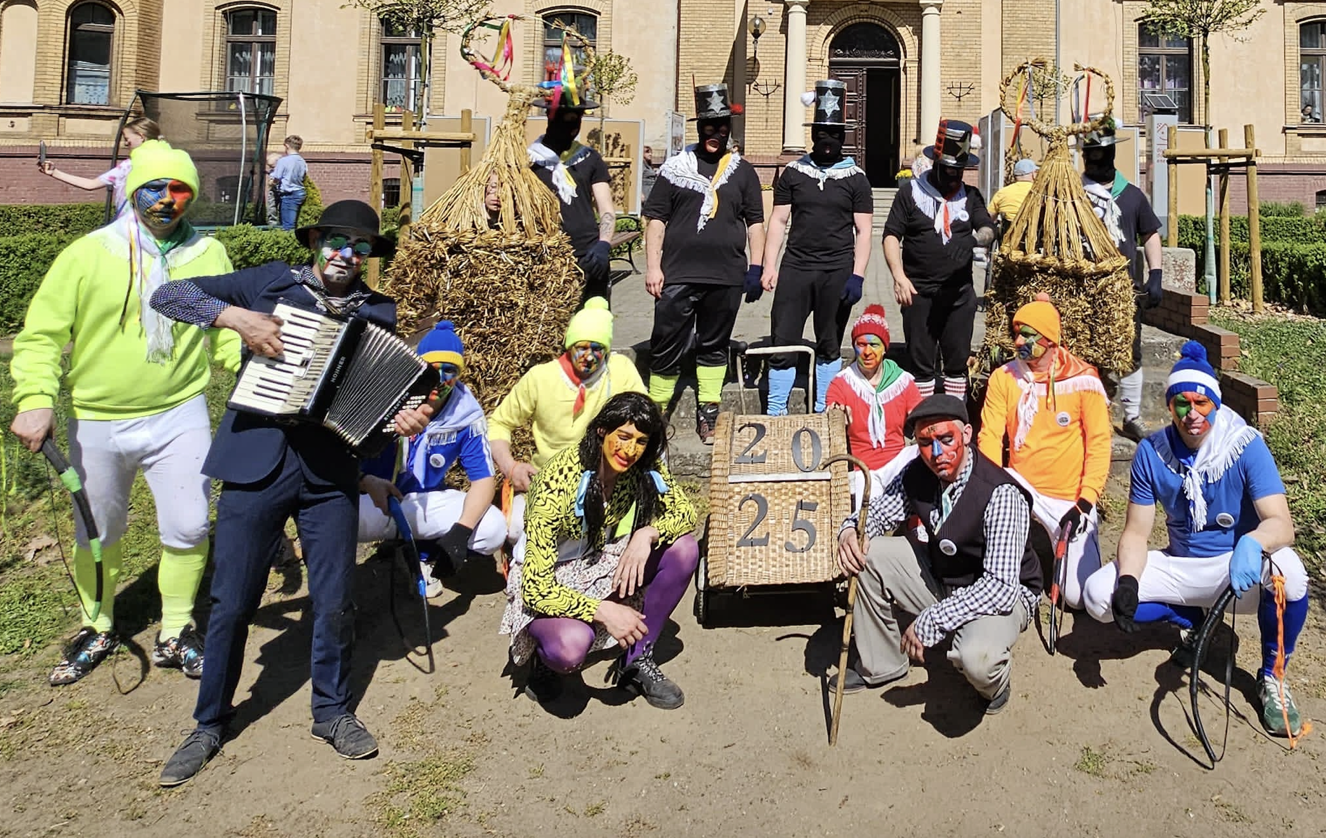 – Chłopacy musieli sierpem ściąć odpowiedniej długości zboża. Kłosy muszą być jak najdłuższe i nie mogą przechodzić przez snopowiązałkę, żeby móc z tego te długie czapy wypleść. Mam nagraną relację pana Jana, który opowiada, jak wyplatano czapy przed wojną. I my dziś robimy to dokładnie tak samo. W 2024 zrobiliśmy akcję „wspólne zdjęcie pod pałacem”, na którym jest 400 osób i są niedźwiedzie. A w 2026 roku, mam nadzieję, na Wielkanoc będziemy już celebrować wpis na listę niematerialnego dziedzictwa – mówi Łukasz.