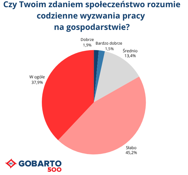- 83,1% rolników uważa, że społeczeństwo słabo lub w ogóle nie rozumie ich pracy