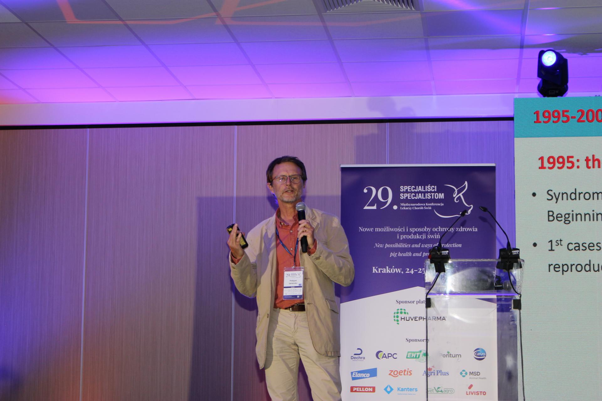 – To był wstrząs, bo nie wiedzieliśmy, co wywołuje tak duże problemy. Okazało się, że za sytuację odpowiedzialny jest cirkowirus świń typu 2 (PCV2), który jest przyczyną wielonarządowego zespołu wyniszczającego po odsadzeniu prosiąt. Chore osobniki miały wręcz ujemne przyrosty dobowe na poziomie –400 g dziennie. Utrata masy ciała często wiązała się z letargiem, gorączką i bladością skóry. W efekcie prosięta, które były zarażone, nie miały szans na wyzdrowienie. Odsetek upadków sięgał 20% – mówił Philippe Leneveu.