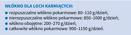 Włókno w paszy dla loch zapewnia prawidłową fermentację w jelicie grubym i zdrową florę jelitową, co przekłada się na lepszy odchów prosiąt. Efekty niedoboru tego składnika to: wzrost pH w układzie pokarmowym, przewaga bakterii patogennych, zaburzenia trawienia, biegunki, odwodnienie, zaparcia, zaburzenia rozrodu i mleczności. Może dochodzić do poronień i syndromu MMA u loch, czyli gorączki poporodowej i zapalenia wymienia, a także zaburzeń metabolizmu energii, wzrostu otłuszczenia i kosztów żywienia.